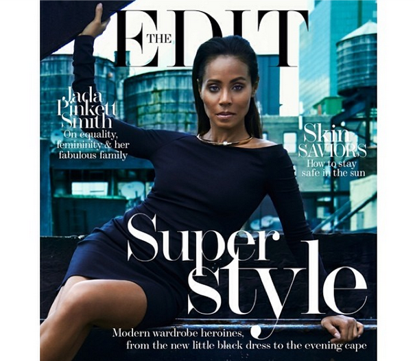 Jada Pinkett-Smith graces the cover of “The Edit” wearing a dress by The Row, pairing it with Chloe Choker and Gianvito Rossi sandals.