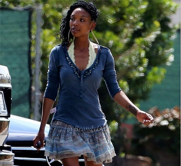 The paparazzi caught Brandy accidentally wearing her Free People Shirt inside out! Happens to the best of us.
