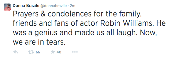 Robin Williams passed away this morning. He has been battling severe depression of late. This is a tragic and sudden loss. The family respectfully asks for their privacy as they grieve during this very difficult time.