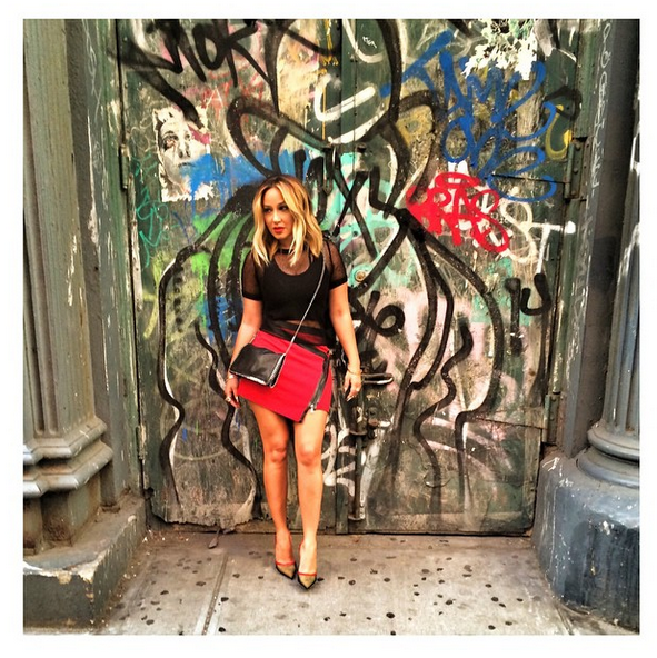 Adrienne Bailon enjoys her hometown of NYC in a Helmet Lang Top, Ohne Title skirt and Christian Louboutins.