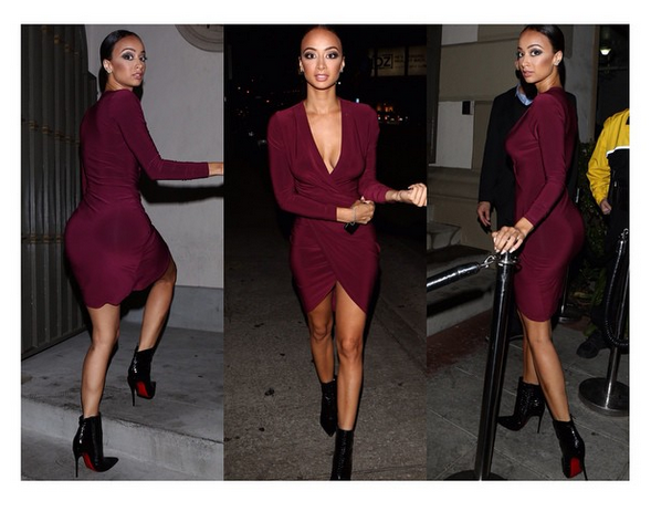 Basketball Wives LA’s Draya Michele steps out in a Just Enaj Dress and Christian Louboutin Stiletto Boots.