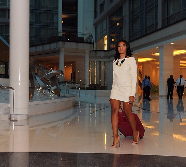 Angela Simmons travels in style, wearing nude Christian Louboutins.
