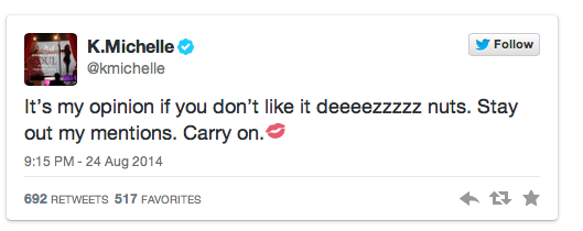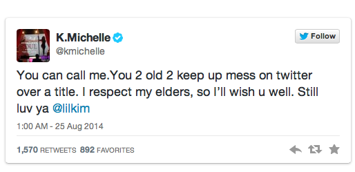 However if fans were looking for the two to go at it on social media, were disappointed when K. Michelle took the high road and told the rapper to call her to squash their small beef. They played into the hype a few more tweets but it’s been silence ever since.