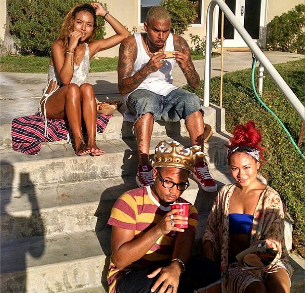 Chris Brown hosts a pool party at his home with girlfriend Karrueche and friends.
