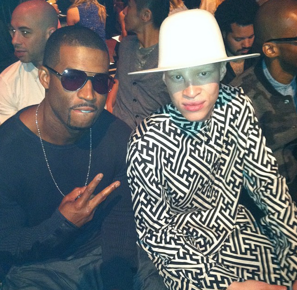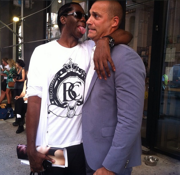 J.Alexander and Nigel Barker have a moment outside the Duckie Brown show. Below, Nigel’s wife goofs off with Miss J.