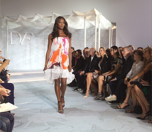 On Sunday (September 7th), super model Naomi Campbell and reality star turned model Kendall Jenner hit Diane von Furstenberg’s catwalk, as the designer presented at New York Fashion Week. This year’s line channeled the theme of the sunny French Riviera in the 1950s, featuring printed tops and partly sheer dresses, bags and stiletto-heeled sandals.