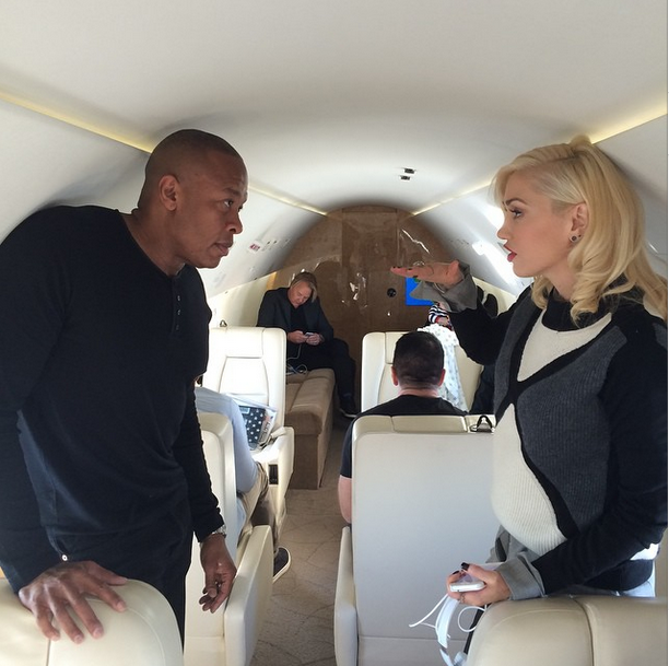 Before the event, we caught Gwen Stefani standing on a private jet with Dr. Dre, who sold his company Beats to Apple recently for a reported $3 billion.