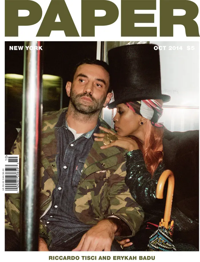 Erykah Badu (real name Erica Abi Wright) and Givenchy Creative Director Riccardo Tisci are cuddling up, sharing the fashion spotlight for PAPER’s October 2014 issue. Both have their own love fest, sharing how they met and why they have such an authentic friendship.