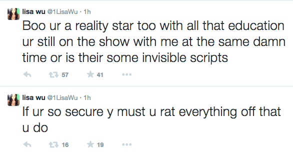 While most of the cast Retweeted fans reactions, former RHOA cast member Lisa Wu seemed none too pleased about what she considered ‘shade’ thrown at her. She tweeted: