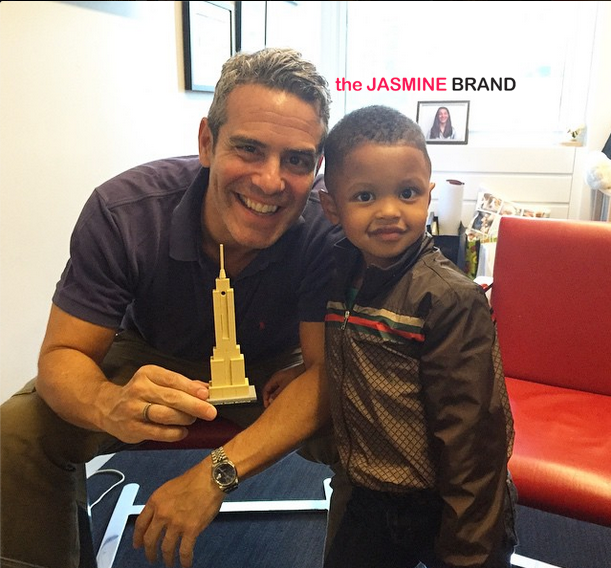 Andy Cohen poses with Phaedra Parks’ son, Ayden at BRAVO’s studio in NYC. P.S. Is that a Gucci jacket?