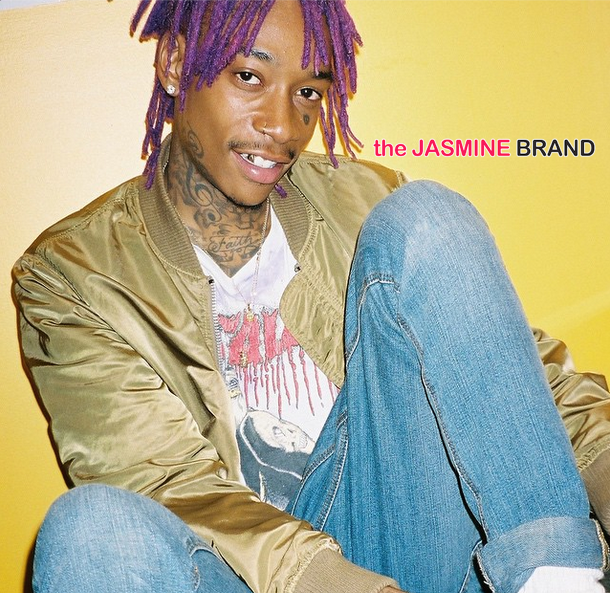 Wiz Khalifa rocks purple dreads and gold tooth.