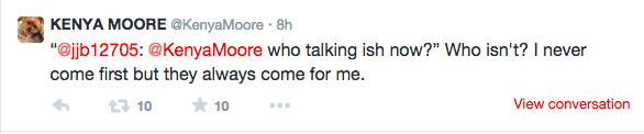Its funny how Kenya always someone is coming for her.Chile,you mention NeNe name,she”comes”runnin.lol