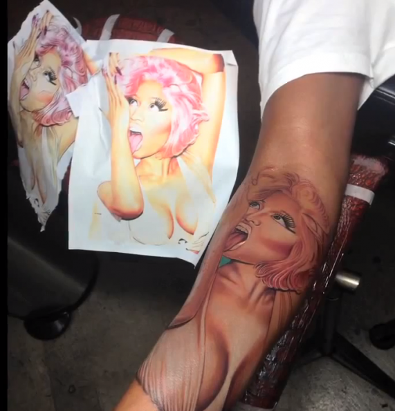 Reportedly, they’re currently on the outs. Over the weekend, Safaree was spotted in LA, shirtless with his infamous Nicki Minaj tatts covered with new ink. No word on when he decided to get cover-up tatts.
