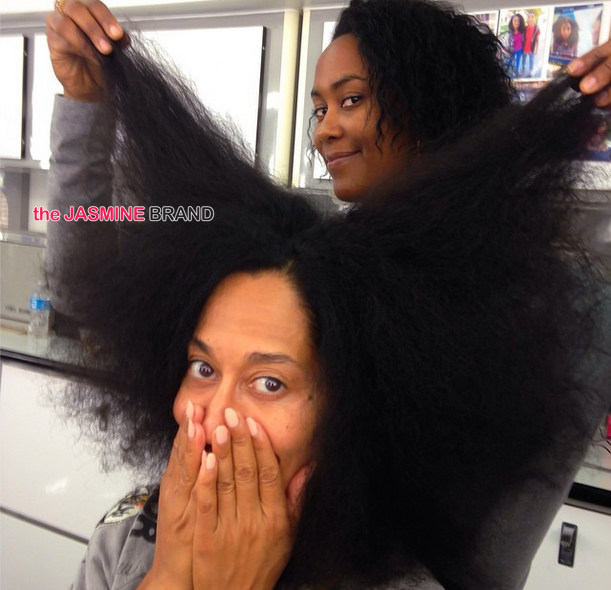 Her hair has wings! Tracee Elliss Ross gets her hair prepped, on the set of ‘Black-ish’