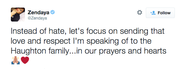 Zendaya Coleman, the original actress who was casted to play Aaliyah but pulled out, Tweeted the following message, asking for less negativity: