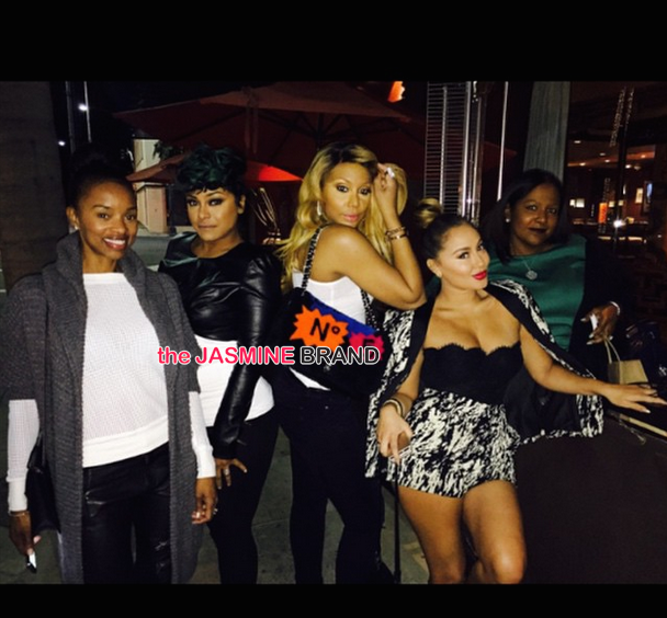 No boys allowed! Tamar Braxton and Adrienne Bailon pose with friends after dinner.