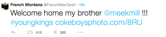 Meek has already began to communicate with his fans on social media.He posted a photo of him and his friend/business partner on Instagram.