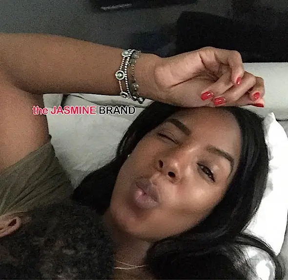 Kelly Rowland poses with her newborn son, while hiding his face from the camera. Hopefully, she’ll give us a peak soon.