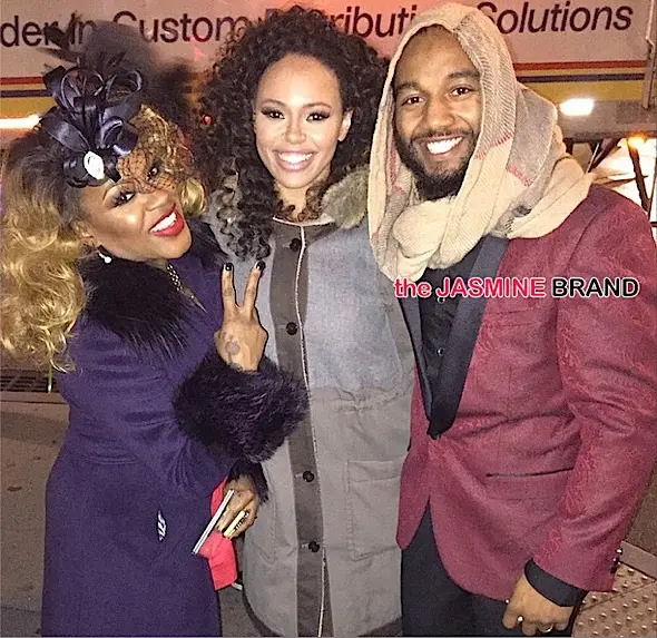 R&B Divas LA’s Lil Mo and husband Karl Dargan pose with singer Elle Varner.