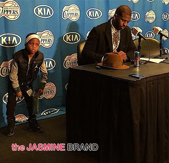 Chris Paul’s son, Christopher Emmanuel Paul II, relaxes while his NBA baller father holds a press conference.
