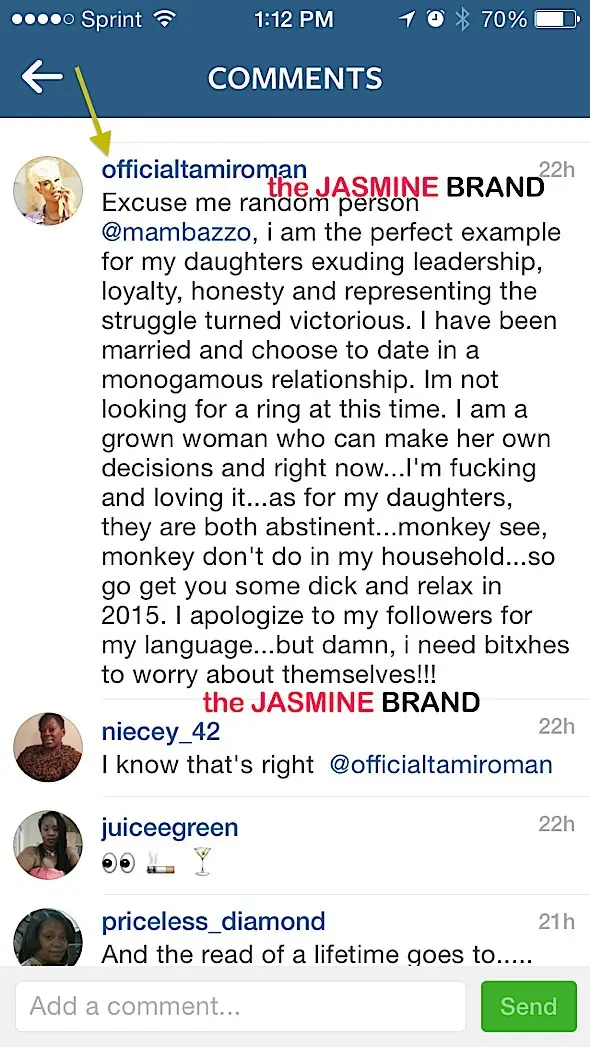 Tami Roman Chastises Instagram Critic: My daughter’s are BOTH abstinent!