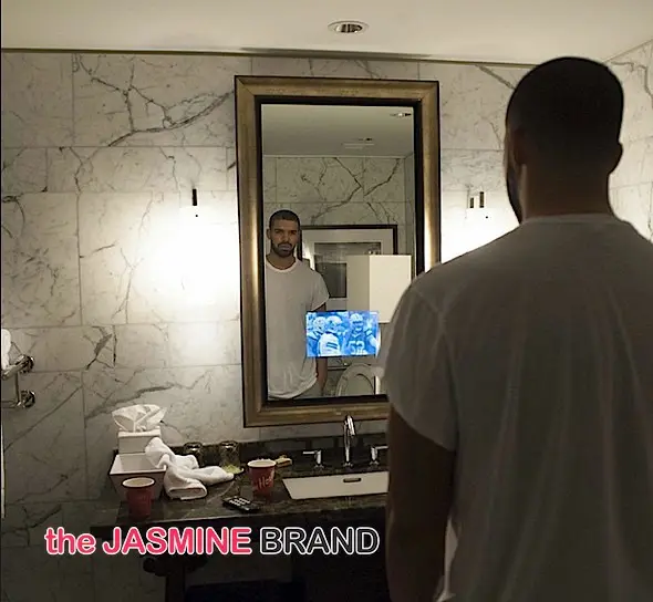 Drake watches last night’s college football game in his bathroom.