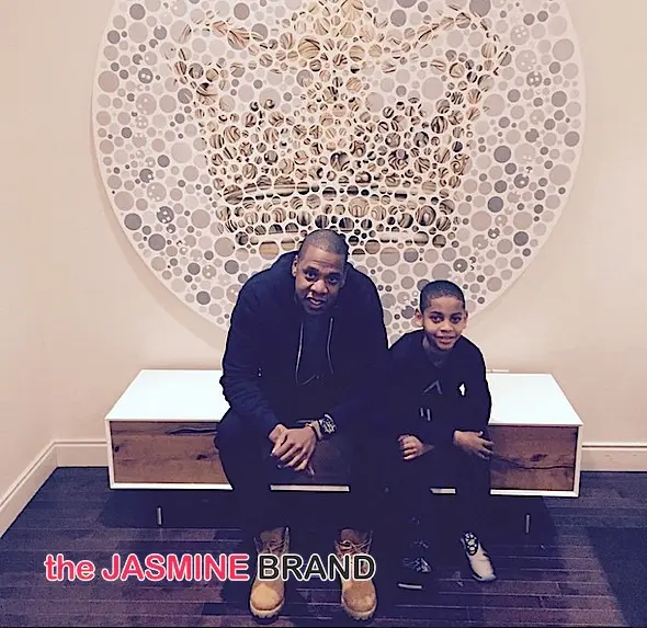 Jay Z poses with LaLa Anthony’s son, Kiyan. The famous son of Lala and Carmelo Anthony, broke his toe and requested that Mr. Carter sign his boot. We hear, Jay happily obliged and took this photo.