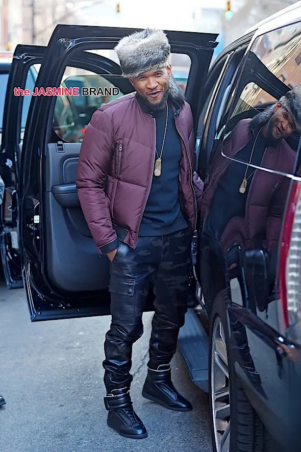 Usher steps out in a fashionable fur hat in Tribeca, NYC.