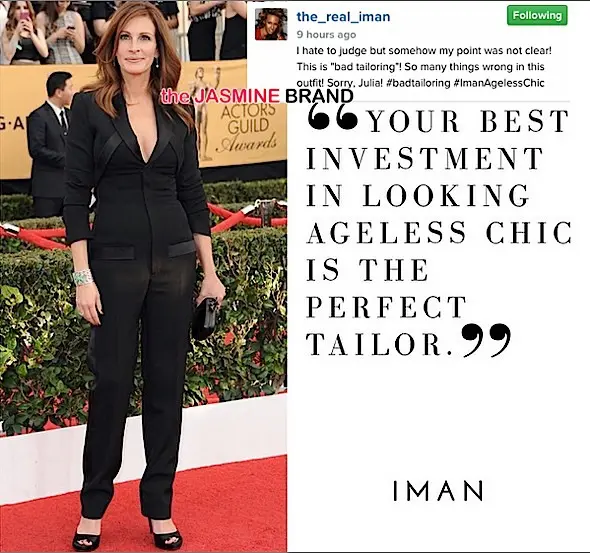 Who needs E!’s Fashion Police, when there are endless fashion experts on social media. Last night, supermodel Iman (real name Iman Mohamed Abdulmajid) — who also happens to be a pioneer in the ethnic cosmetics industry — weighed in on her thoughts on the fashion at the SAG Awards. Posting on Instagram, she shared a series of photos, inserting her fashion point of view. Harmless, right?