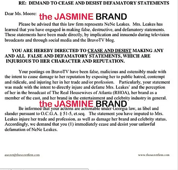 I think Nene’s whole issue with me is she’s intimidated and she has met her match. I don’t think she ever watches herself. How do you come out of your mouth and say cease and desist when you’re the biggest trouble maker and name caller on the show?