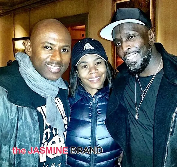 Actors Romany Malco, Regina Hall and Michael K. Williams snap a photo together.