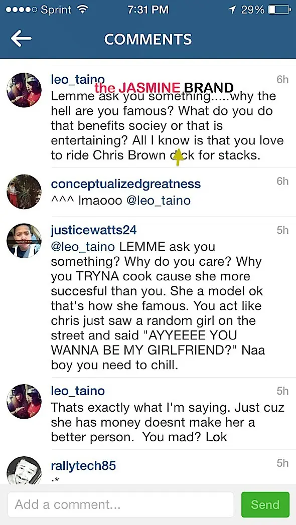 Apparently, Karrueche had enough of one of her Instagram followers who questioned why she was ‘famous’. A Instagram user by the name of Leo_Taino questioned what makes Karrueche a celebrity. Peep his comment below.