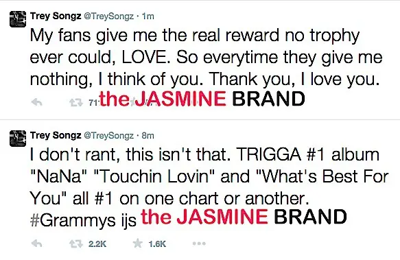 year. I don’t rant, this isn’t that. TRIGGA #1 album “NaNa” “Touchin Lovin” and “What’s Best For You” all #1 on one chart or another. #Grammys ijs … My fans give me the real reward no trophy ever could, LOVE. So everytime they give me nothing, I think of you. Thank you, I love you.