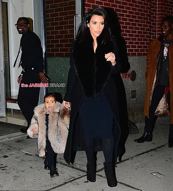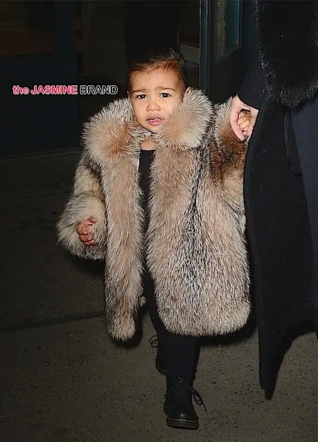 Tell Peta my mink is dragging on the floor! North West steps out in her baby fur, with mom Kim Kardashian. The two were leaving Kanye West’s show in New York.
