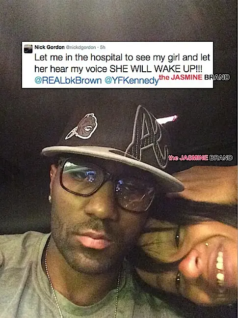 Nick Gordon, the boyfriend of Bobbi Kristina, has taken to twitter, pleading that he be allowed to see the 21-year-old in the hospital. Over the weekend, he Tweeted that he believes if Bobbi Kristina hears his voice, she will awaken from her coma. He writes: