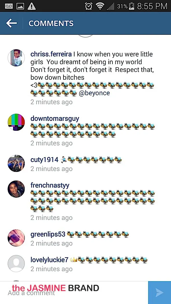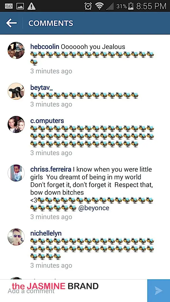 They invaded his Instagram page (via the photo above) leaving an endless amount of bee emoji’s & not so nice comments. Peep ‘me below.