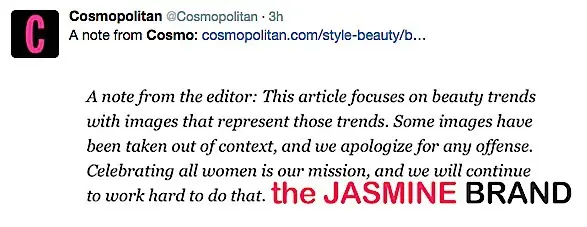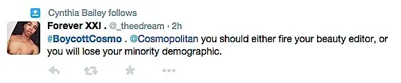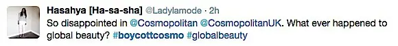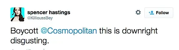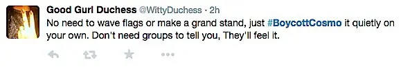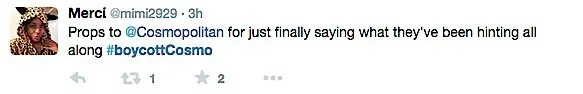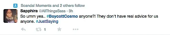 Twitter erupted after the article began to circulate, with a trending topic #BoycottCosmo.