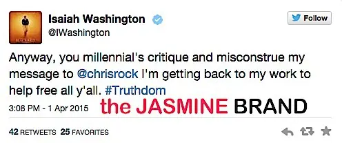 Anyway, you millennial’s critique and misconstrue my message to @chrisrock I’m getting back to my work to help free all y’all. #Truthdom.