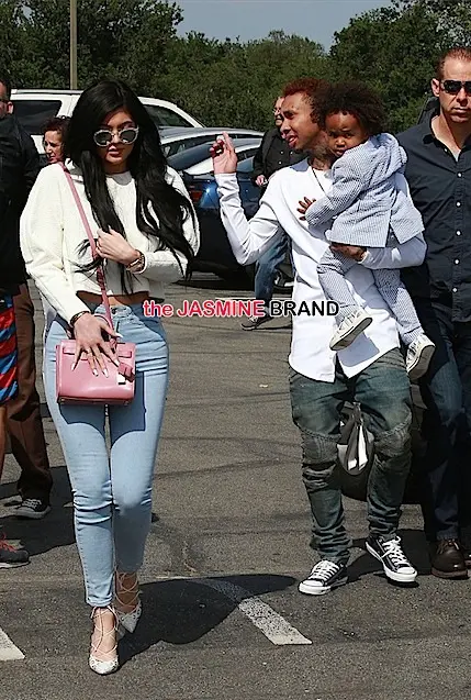 It was a family affair Easter Sunday. 25-year-old rapper Tyga (real name Michael Ray Nguyen-Stevenson) and his rumored girlfriend Kylie Jenner (17) made one of their first public appearances with Tyga’s son, King Cairo.