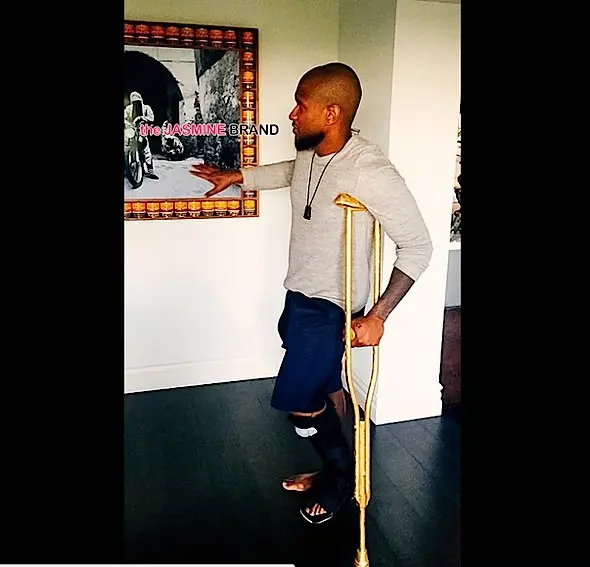 Fractured Fashion!! Singer Usher is hopping around in gold crutches.