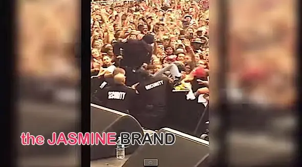 Over the weekend, rapper B.o.B. had a concert at KSFM’s 102.5 Live concert in Sacramento. And all seemed to be going well until an overly eager fan approached the front of the stage. From what we can see, it appears that the man may have swung a punch at the security guard. And what happened next? The entire security team stepped in and unleashed a fury of punches. Ultimately, the handcuffed the concert-goer, but not before throwing smacking the dude in question.