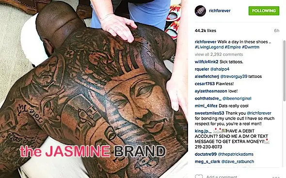 Rick Ross is a free man! After being arrested in Atlanta for misdemeanor weed possession, the Maybach Music leader shared a few photos of him relaxing after leaving the big house. In one photo, Rozay gets a fresh haircut and in another he snaps a photo of his tatted-out back, as he gets a massage.