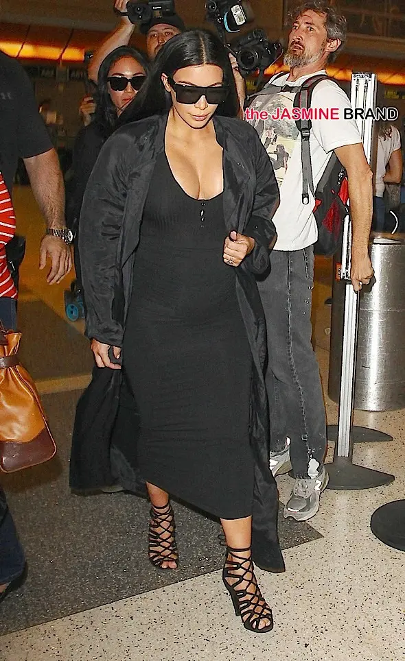 Kim Kardashian and her growing belly are spotted at LAX.