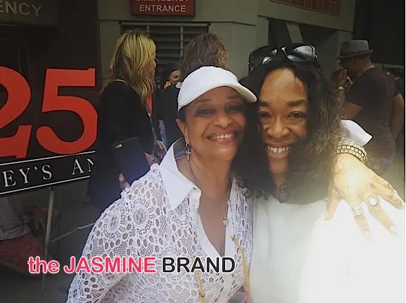 Director Debbie Allen and Shonda Rhimes hug it out on set of Grey’s Anatomy.