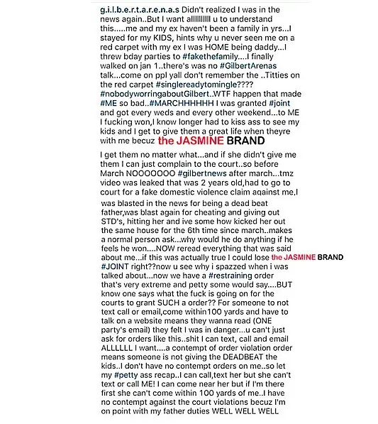 Arenas also posted and deleted the following lengthy message on Instagram: