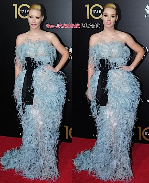 Iggy Azalea attends the Vogue China dinner wearing an Armani Prive gown.