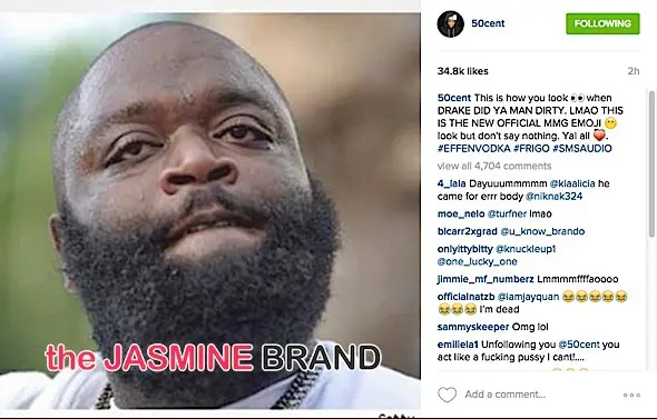 It’s an Instagram war brewing between 50 ‘Cent’ Curtis Jackson and Rick Ross. From what we’re told, the slander began with 50 and was responded to by Ross. These two have been throwing lyrical and interview jabs for quite some time. Anywho, check out the back and forth between the pair below.