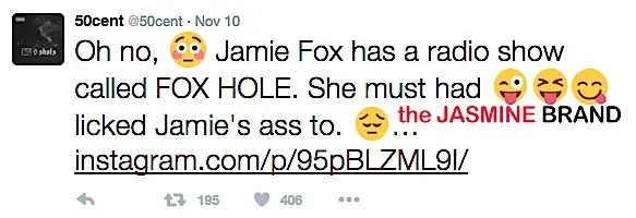 Fast forward to the present day and both 50 and Fox are going for blows on places like Twitter and Instagram. Fox posted this message below.