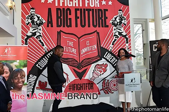 In conjunction with Warner Bros. digital campaign entitled “#IFightFor,” the stars and talent behind the motion picture CREED, Michael B. Jordan (star of CREED), Tessa Thompson (star of CREED), Ryan Coogler(Writer/Director of CREED) and Janice McKenzie-Crayton (President & CEO, Big Brothers Big Sisters of Metro Atlanta) honored Big Brothers Big Sisters of Metro Atlanta’s (BBSS) personalized message entitled “I Fight For a Big Future” with a donation to their mentoring program, and mural dedication designed by Shepard Fairey’s design studio, Studio Number One. The mural will be located in the Mentoring Center within the newly adopted local headquarters of BBBS of Metro Atlanta. Check out the flix!