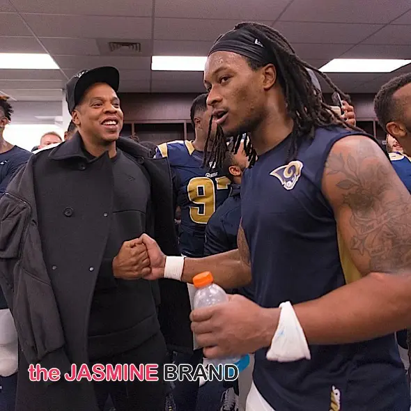Jay Z is spotted enjoying NFL Sunday. He was seen in the St. Louis locker room after the team beat the Detroit Lyons. [FYI: Todd Gurley (below) is signed to Roc Nation Sports.]